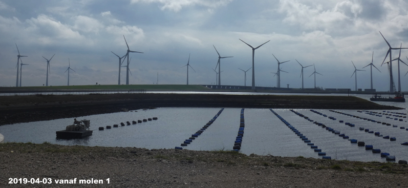 Terug naar de uitkijktoren: dinsdag was het eerst nog prachtig weer en spraken we toeristen die lid waren van â?? Vrienden op de fietsâ? en richting Antwerpen wilden. Ze genoten van het uitzicht op de toren en ik mocht ze het een en ander vertellen over de sluizen en natuurlijk de windmolens. Ze waren niet erg gesteld op molens en geloofden meer in kernfusie maar waren het met mij eens dat die ontwikkeling nog veel tijd, voorlichting en overtuigingskracht gaat kosten en dat je daar niet op kunt wachten dus nu iets alternatiefs nodig hebt en dan is windenergie zo gek nog niet. Later ging het betrekken, kwamen de wolken opzetten en was er zelfs bliksem. Twee enthousiaste jongens op racefietsen kwamen schuilen in de toren en vroegen me of de molens wel een bliksemafleider hebben. Ik vermoedde van wel omdat ik me een verhaal herinnerde over dieven die uit waren op het koper van de bliksemafleiders in molens. Net als veel andere bezoekers van dit windpark missen zij een goed informatiebord over het park. Ik wees ze op de website en de mogelijkheid een appje te installeren op hun mobieltje maar ook zij willen daarnaast een informatiebord. Ik vertelde dat zoâ??n informatieruimte in aantocht is via een wedstrijd onder ontwerpers.