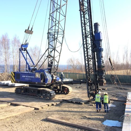Als onderaannemer van GMB is Gebr. De Koning B.V. betrokken is bij de bouw van Windpark Krammer. Speciaal voor deze werkzaamheden hebben zij een extra zware shovel aangeschaft om deze palen op de locatie te kunnen brengen. Niet zo vreemd aangezien de eerste heipaal maar liefst 7,5 ton weegt en 15,5 meter lang is. Dit is nog niet de zwaarste heipaal die gebruikt gaat worden, want die weegt 13,9 ton.