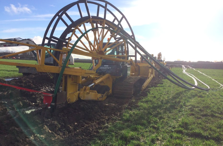 De kabels worden in stukken van 1,5 kilometer op een haspel aangeleverd. Eerst worden de kabels door de boringen heen getrokken en op het maaiveld klaar gelegd. Daarna worden de kabels met een speciale ploeg op ongeveer 1,8m diepte onder het maaiveld geïnstalleerd.
