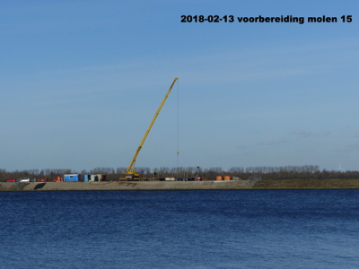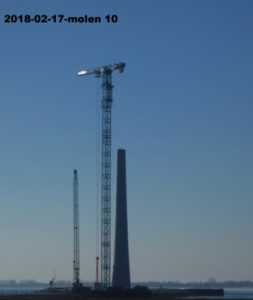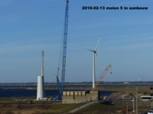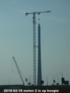 Op 18/2/18 was het weer rustig op het terrein en bekeek ik de drie molens die nu klaar zijn. Aan deze kant van de weg hoeven allen nog 15 en 28 gebouwd worden. Bij het zeearendnest in aanbouw stonden twee Belgische bussen met vogelspotters maar ook een grote groep Nederlanders te genieten van het verliefde stelletje dat takken brengt voor hun huwelijksnestje.