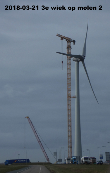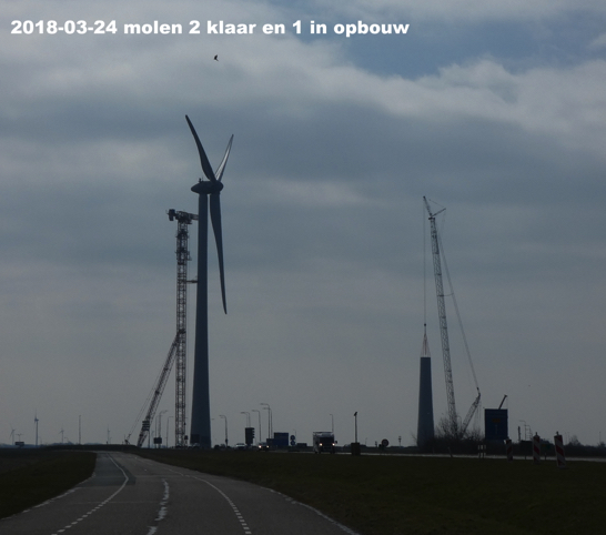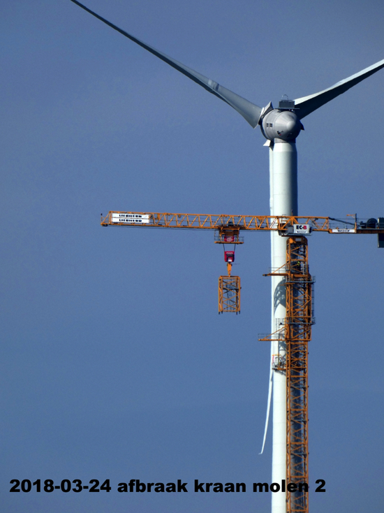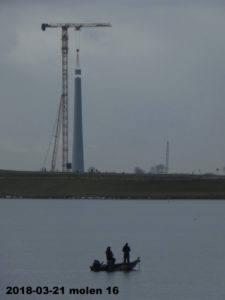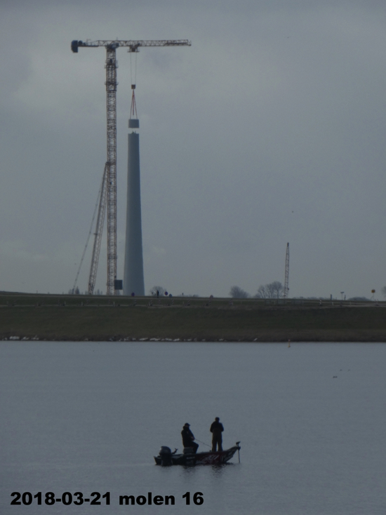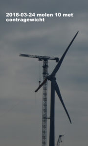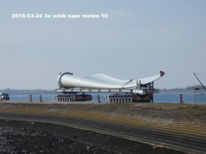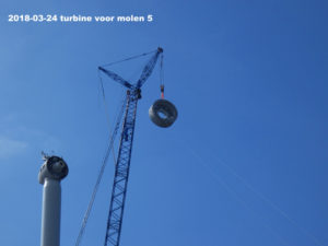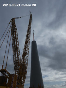 Zaterdag 24 maart waren er meer dan 100 mensen op de site aan het werk. Bij molen 1 werden segmenten gehesen, bij molen 2 werd de kraan afgebroken, bij molen 5 ging de turbine naar boven, bij molen 10 ging het contragewicht eraf en kon de laatste wiek omhoog en bij molen 28 werden ook segmenten geplaatst. Ik genoot van alle activiteiten en het lente weer en maakte heel veel fotoâ??s maar er mogen nu nog maar 10 per blog geplaatst worden om de website niet te veel te belasten.