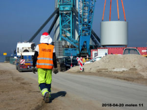 Vanmorgen was het heel rustig op de site en sprak ik alleen de Polen die bij molen 28 bezig waren met de mobiele kraan die daar nu klaar is. Natuurlijk had ik ook een praatje met een portier en altijd vind ik het weer boeiend wat de portiers gedaan hebben voor ze dit baantje kozen. Deze portier had bij een groothandel gewerkt en was het na 20 jaar zat om de hele dag alleen maar aan omzet en winst te denken en was straatcoach/ preventie-medewerker geworden in een grote stad. Hij had genoten van alle contacten met al die nationaliteiten met hun eigen gewoontes en specialiteiten en had geleerd dat iedereen behoefte heeft aan aandacht, respect en een luisterend oor en als je dat uitstraalt kan je met iedereen overweg. Het nadeel was dat je veel â??s avonds en â??s nachts moet werken en toen dat niet meer ging vanwege zijn gezondheid was hij in dit portiers vak gaan werken en had het erg naar zijn zin.