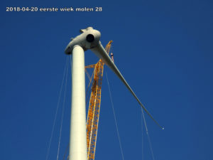 Er waren afgelopen week weer veel mensen die zich hadden ingeschreven voor een obligatie en nu net deden of het hele windpark al van hen was. Net als vorige week ook weer klachten over de reclame voor het inschrijven want dat kost geld en dat gaat van hun winst af. Ik ging weer eens de discussie aan over het feit dat het duurzamer maken van de samenleving toch belangrijker is dan die 6-8% rente die ze denken te vangen op hun obligaties maar dat viel niet in goede aarde want geld is voor veel mensen heilig. Ik wijs ze dan om te pesten ook even op al die kostenverslindende maatregels op de site om het welzijn van de vogels te waarborgen. Delen zijn afgesloten vanwege het broedseizoen en overal waggelen ganzen met hun jongen vredig tussen de bedrijfswagens en molens.