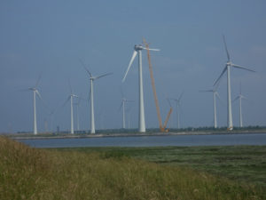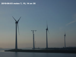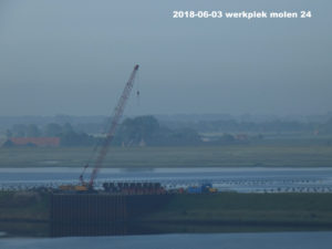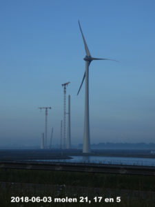 Omdat het rustig was nam ik een keer de tijd om op St. Philipsland rond te rijden en het Krammerproject eens van een andere kant te bekijken. Zie het filmpje. Wat een andere aanblik met die kreken waar nog eb en vloed een rol speelt. We telden nu 21 molens die klaar zijn en vier die al vergevorderd zijn. Ik had die morgen de beroepsfotograaf uit Apeldoorn gesproken die het hijsen van de tweede wiek van molen 27 had vastgelegd en daarna met een ecoloog het terrein met een andere blik ging bekijken. Toen we elkaar in juli 2017 voor het eerst spraken was als eerste molen 13 bijna klaar en dan besef je toch weer wat een knap staaltje werk hier nu in minder dan een jaar verricht is.