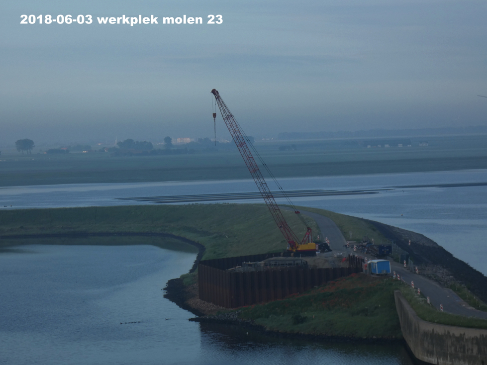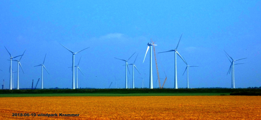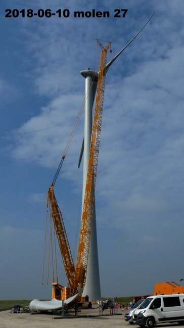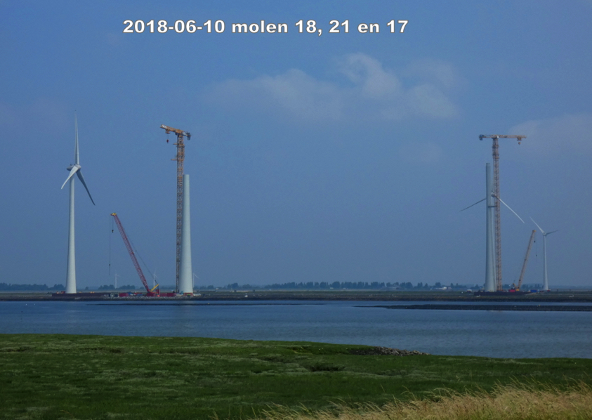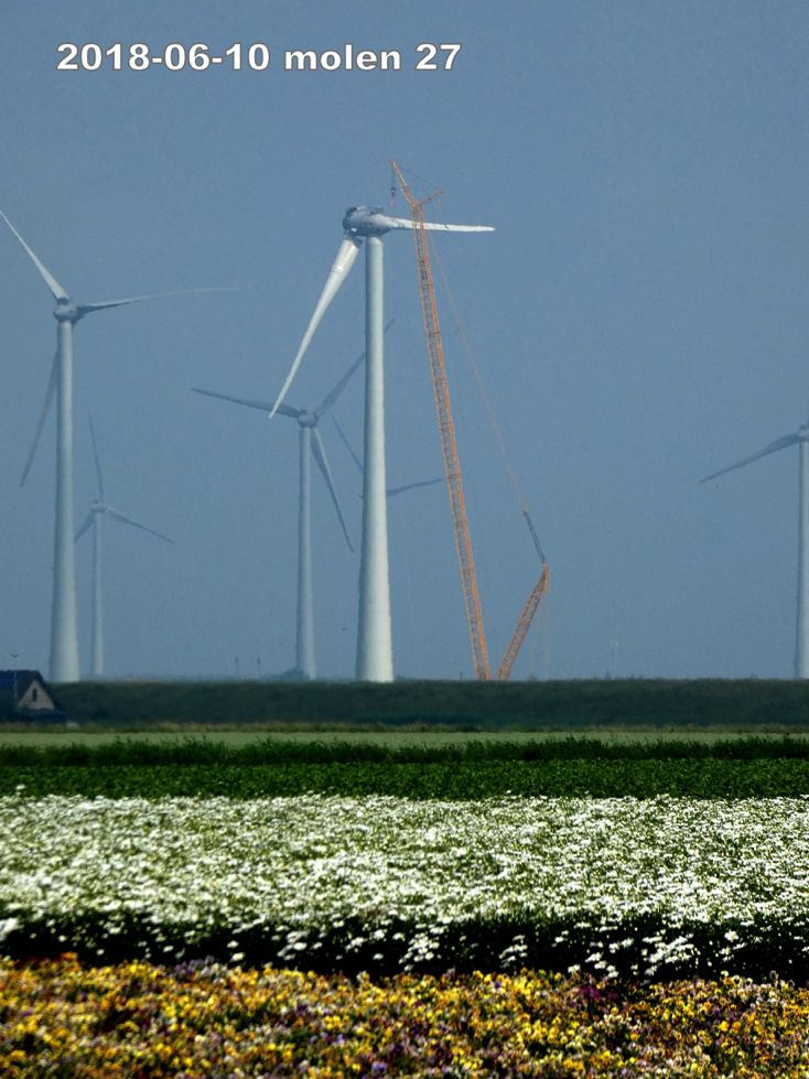 Omdat het rustig was nam ik een keer de tijd om op St. Philipsland rond te rijden en het Krammerproject eens van een andere kant te bekijken. Zie het filmpje. Wat een andere aanblik met die kreken waar nog eb en vloed een rol speelt. We telden nu 21 molens die klaar zijn en vier die al vergevorderd zijn. Ik had die morgen de beroepsfotograaf uit Apeldoorn gesproken die het hijsen van de tweede wiek van molen 27 had vastgelegd en daarna met een ecoloog het terrein met een andere blik ging bekijken. Toen we elkaar in juli 2017 voor het eerst spraken was als eerste molen 13 bijna klaar en dan besef je toch weer wat een knap staaltje werk hier nu in minder dan een jaar verricht is.