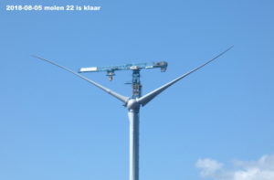 De kraan van molen 22 is geheel afgebroken en staat in de opslag. Ik gok dat hij naar molen 9 of 23 gaat want op die plaatsen staat al een eerste ring. Zie fotoâ??s.