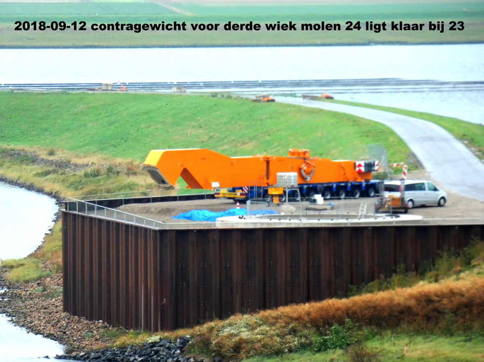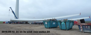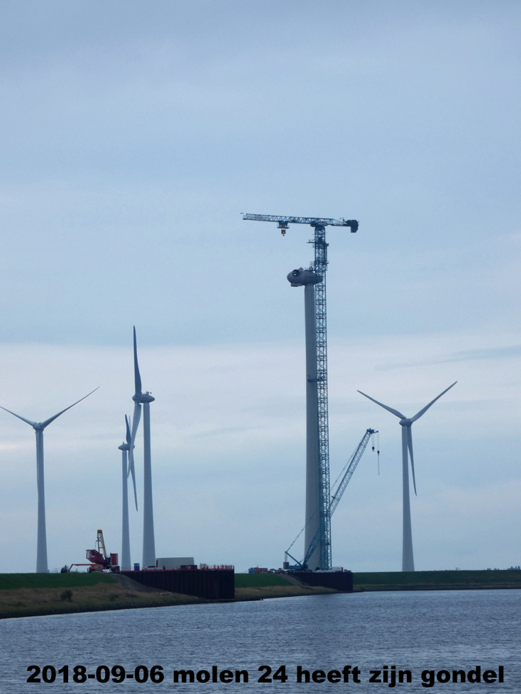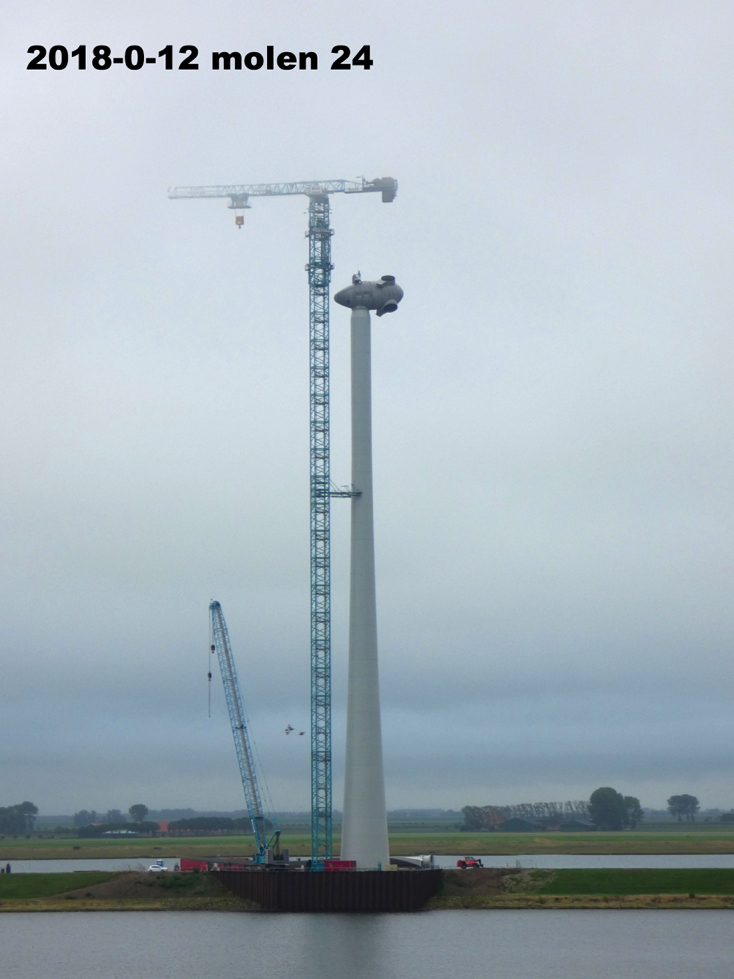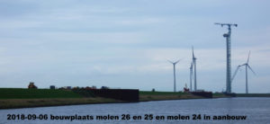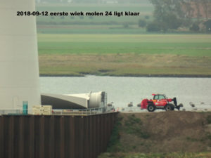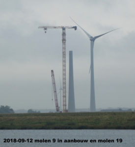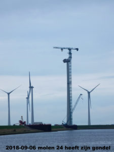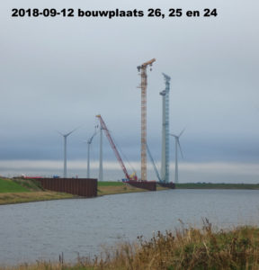Natuurlijk kwamen er deze week ook heel wat mensen op de uitkijktoren om naar de vorderingen van de molenbouw te kijken. Molen 9 is nu al op hoogte en die kraan gaat straks voor zijn laatste klus hier naar molen 8. Molen 24 is nu ook klaar en de kraan wordt al weer afgebroken en gaat voor zijn laatste klus naar molen 23. Bij molen 25 is de gele kraan opgebouwd en worden al segmenten gehesen en daarna kan de kraan naar 26 en is het bouwen van de molens klaar. Minder opvallend maar wel degelijk spectaculair is het herstel van de natuur rond de bouwplaatsen. Hekken worden afgevoerd, â??lego-stenenâ? opgeruimd en verharde terreinen weer in de oorspronkelijke staat terug gebracht. Als laatste zullen de lantaarnpalen weer recht gezet worden.