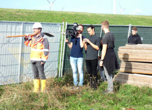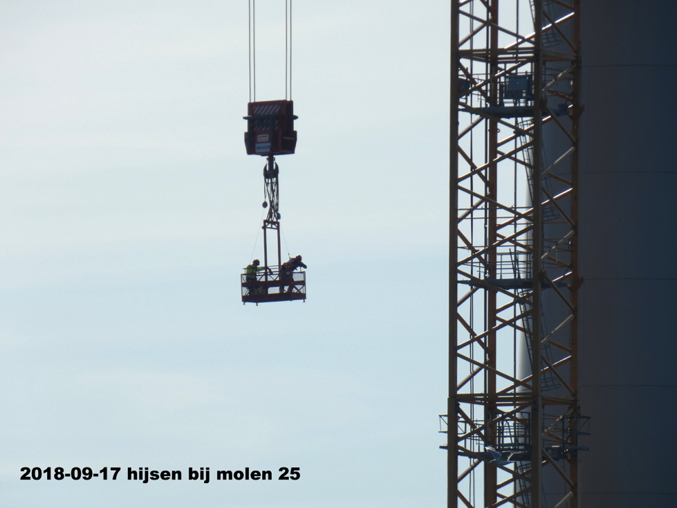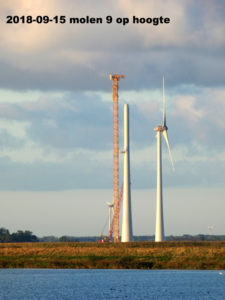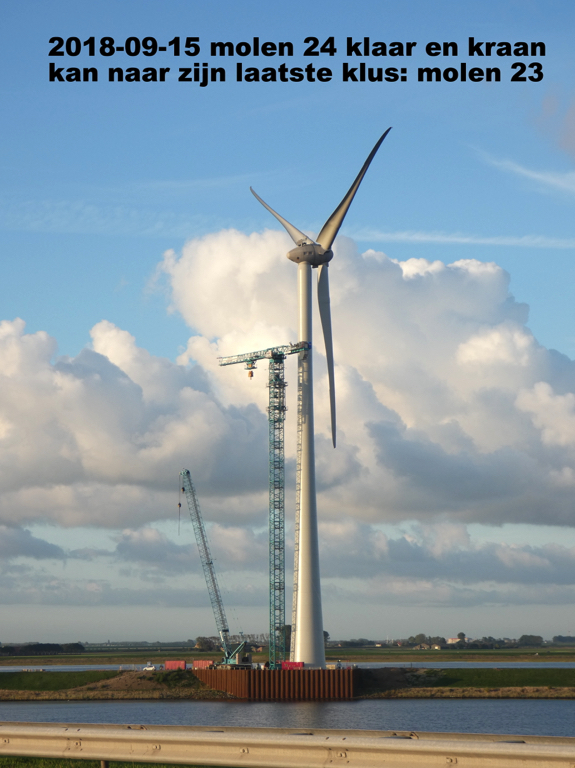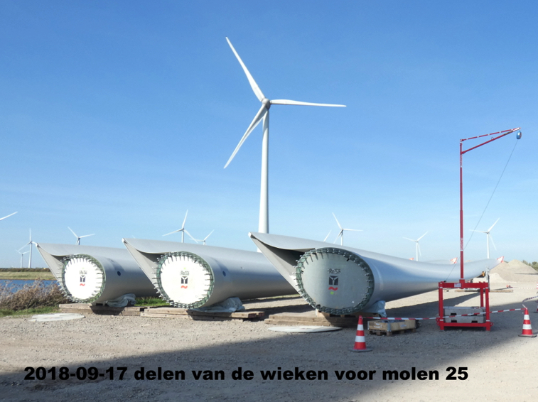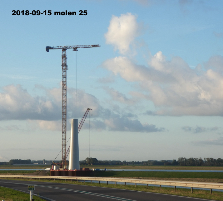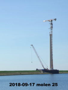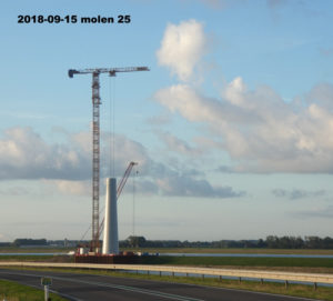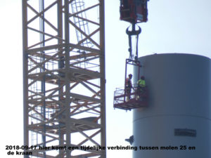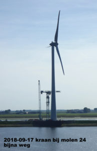 Woensdag werd er rond molen 31 een stuk van een film opgenomen en tal van medewerkers mochten figurant zijn en zo hoorde ik weer allerlei nieuwtjes. Mijn verhaal dat de kraan van molen 9 naar molen 8 gaat klopt niet meer want deze kraan gaat naar molen 26 omdat die molen belangrijk is voor de keten van kabels en de molens in die hoek dan eerder stroom kunnen gaan leveren. Molen 8 zit aan het eind van een kabel en heeft daarom geen haast en moet op de kraan van molen 25 wachten. Wat mij opviel is dat zoâ??n filmcrew die toch al een jaar hier documentaires maakt totaal geen gevoel voor veiligheid heeft en onbeschermd onder kranen staat en werkende mensen in de weg loopt en niet beseft dat er ook gewoon hier gewerkt moet worden. Ik stelde de regisseur nog voor om de portier met haar Mini Cooper in zijn film op te nemen maar het script was al af.  Misschien moet je als kunstenaar je wel focussen op je werk en je niet laten afleiden. Ik was geroerd dat een regieassistente mij als zeventig jarige aansprak met â??jongen, wil jij even iets naar rechts gaan staanâ?. Ik ben benieuwd naar het resultaat en hoop dat de mensen van GMB die nu vakkundig het terrein weer in de oude staat herstellen, niet beseffen dat het salaris van die zielige mensen in oranje jassen die met oude scheppen staan te rommelen in de film zeker het dubbele is als dat van hen.