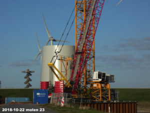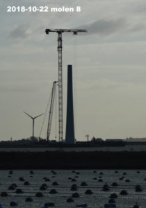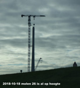 Nu molen 26 bijna klaar is en molen 8 bijna op hoogte is rest ons alleen nog molen 23 die in rap tempo de kraan naast zijn eerste drie ringen ziet verrijzen. Wat zal dat een verandering zijn als al die activiteit van kranen en transport van onderdelen stopt. Ook heeft GMB al veel natuurgebied dat tijdelijk gebruikt werd voor opslag weer opgeruimd en in de oorspronkelijke staat teruggebracht. Ik probeerde er achter te komen hoe het staat met de plannen voor drijvende zonnepanelen in het zoute opslagbassin en met een grote accu voor opslag van elektriciteit als de productie van de molens erg groot is maar kon de juiste mensen niet vinden. Ik zie na alle enthousiaste verhalen van onder meer de Hoogovens over de productie van waterstof als schone energieleverancier ook best mogelijkheden voor een waterstoffabriek op de Krammer maar dat is natuurlijk niet aan mij.