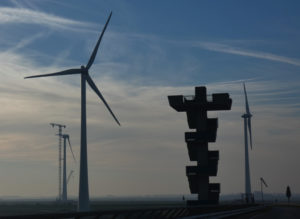 Zondag waren we vroeg op de toren en bij 1 graden en een stevige wind was het niet erg comfortabel maar toch kwamen er veel wielrenners over de Philipsdam en eentje kwam ook nog naar boven om van het uitzicht te genieten. Met de opkomende zon was er een mooi schaduwspel van de kranen en de draaiende wieken op de schachten van veel windmolens en de blauwe kleuren van de tonnen van de mosselkwekerij bij molen 1 en 2 werden steeds feller. De wielrenner vertelde dat hij ook dichter was en inspiratie kwam op doen voor een gedicht over de transitie waar veel mensen zo mee bezig zijn. Hij had in de krant gelezen over de Engelse uitdrukking â??a Marmite effectâ? dat betekent dat er over iets totaal verschillende meningen naast elkaar bestaan. Marmite is een bruin smeersel dat uit afval van bierbrouwerijen wordt gemaakt en vooral de Engelsen vinden het of erg lekker of heel vies. Ik ben er dol op en omdat mijn dochter bij de producent Unilever werkt heb ik er een muismat en een muis van voor mijn laptop. Volgens de dichter is het met windmolens precies hetzelfde; je bent er voor of tegen en blijft dat en bent nauwelijks bereid naar de andersdenkenden te luisteren. Met een gezin kun je vredig aan tafel zitten en iedereen vrij laten wat hij op zijn boterham smeert en zo zou dat ook moeten met mensen die in plaats van voor de molens gaan voor zonnepanelen of aardwarmte.
