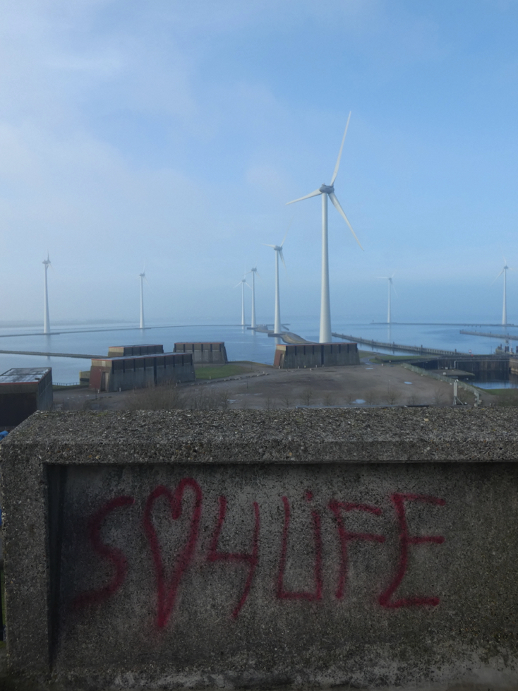 De Krammermolens zullen daar zeker aan bijdragen want de meeste molens draaien volop en als ik zie hoeveel mensen zonder halverwege even te moeten rusten de uitkijktoren vlot beklimmen besef ik dat er nog veel gezonde mensen zijn. Natuurlijk zegt dat alleen iets over hun lichamelijke conditie maar als je op de toren met bezoekers praat blijken de meesten ook geestelijk goed in orde en staan ze positief in de wereld en zijn enthousiast over duurzame energie.