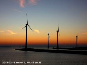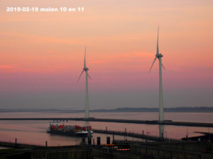 Nu de molens klaar zijn komen er minder mensen specifiek naar de molens kijken maar tref ik wel vanwege de voorjaarsvakantie meer gezinnen die ook belangstelling hebben voor de boten die door de sluis gaan, de tonnen van de mosselkwekers en het prachtige uitzicht op dit Natura2000 gebied. Veel toeristen vragen waarom er niet meer informatieborden bij de uitkijktoren staan want er moet toch heel wat te vertellen zijn. Ik zeg dan altijd dat er aan gewerkt wordt en dat ik ze nu van alles kan vertellen over duurzaamheid, energiecoöperaties, de natuur en de werking van de zoet-zoutscheiding in de sluizen maar daar heeft niet iedereen behoefte aan.