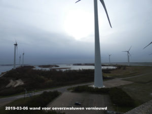 De GMB heeft nu bijna alle werkterreinen voor de molenbouw weer in de oorspronkelijke staat terug gebracht en je ziet nog maar weinig werkautoâ??s bij de molens staan. De wand voor de oeverzwaluwen achter het voormalige portiershuisje is vernieuwd en weer klaar voor ontvangst van die vogels uit verre landen.