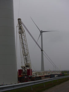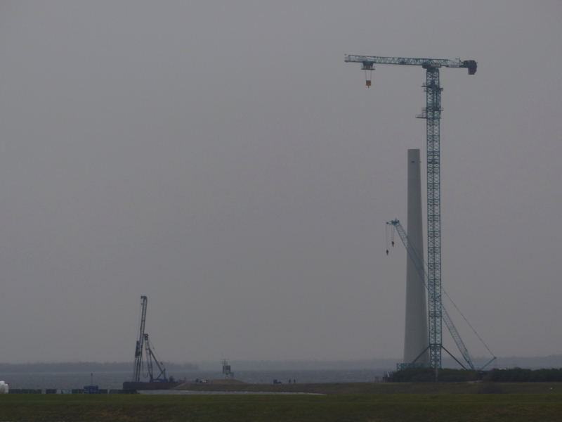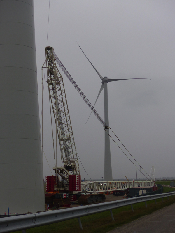 Vanwege de harde wind werd er deze week nauwelijks gehesen en het bericht dat de eerste molen stroom ging produceren bleek onjuist dus er valt weinig nieuws vanaf de toren te melden. We waren er twee keer en troffen beide keren niemand anders op het uitkijkplatform, maar maakten natuurlijk wel een praatje met de portiers. Er was weer een nieuwe stagiaire, een jongen met een allochtone achtergrond die persoon-beveiliger wil worden. Ik vroeg hem of hij met zijn achtergrond Wilders zou kunnen beveiligen want deze politicus laat zich toch vaak negatief uit over buitenlanders. Hij vertelde dat beveiliger een vak is waarin je beroepsmatig moet functioneren en waarbij het je taak is om een persoon te beveiligen en daarbij is het niet belangrijk wie die persoon is want je moet je altijd neutraal opstellen en nooit met je eigen oordeel te koop lopen. Ik was onder de indruk van zijn antwoord.