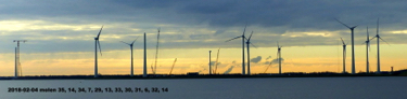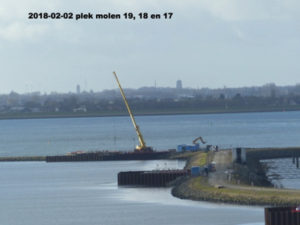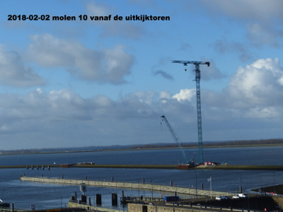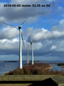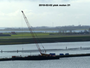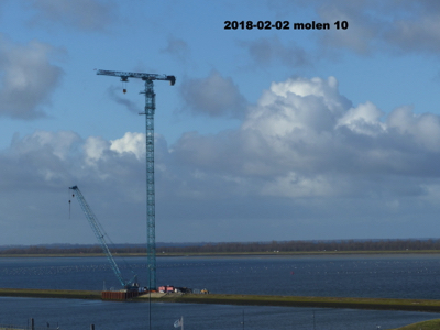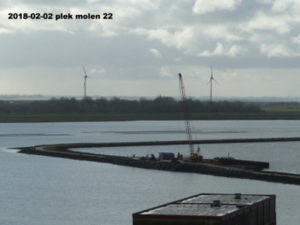 We verwachten nu weer meer bezoekers op de uitkijktoren want de volgende molens zullen vooral aan de overzijde van de weg gebouwd worden en veel minder zichtbaar zijn vanaf de parallelweg. Bij molen 10 is een vast hoge kraan opgebouwd en bij molen 5 staat een hoge mobiele kraan en bij die molens zal de bouw wel spoedig beginnen. Molen 2 vliegt ook snel de hoogte in en molen 4 heeft als eerste verlichting; overdag wit en â??s nachts rood licht. Aan deze kant van de weg is het wachten op molen 15 en molen 28 en als die klaar zijn is hier het doel bereikt. Achter molen 29 wordt gewerkt aan uitbreiding van het natuurgebied als compensatie van de ruimte die de molens gaan innemen. Vanmorgen liepen er drie reeën en ook de zeearend wordt bijna dagelijks gespot.