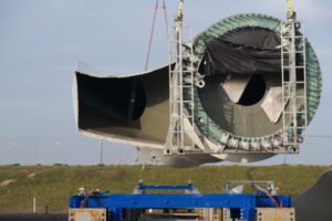 Zoals gezegd zijn 13 turbines helemaal af. 14 torens zijn gereed. Een aantal turbines draait zelfs al. Het is de bedoeling dat de eerste turbines in maart overgenomen worden en daadwerkelijk in productie gaan.