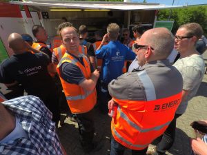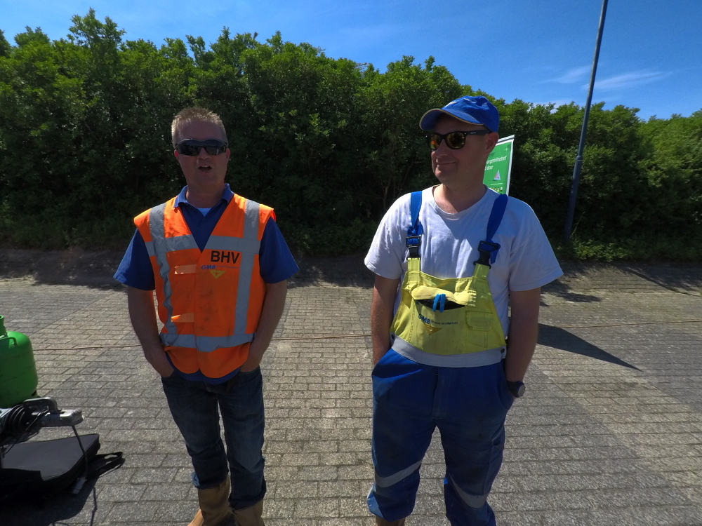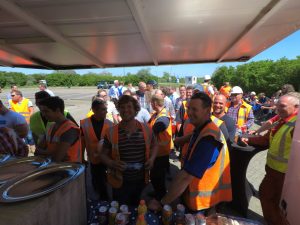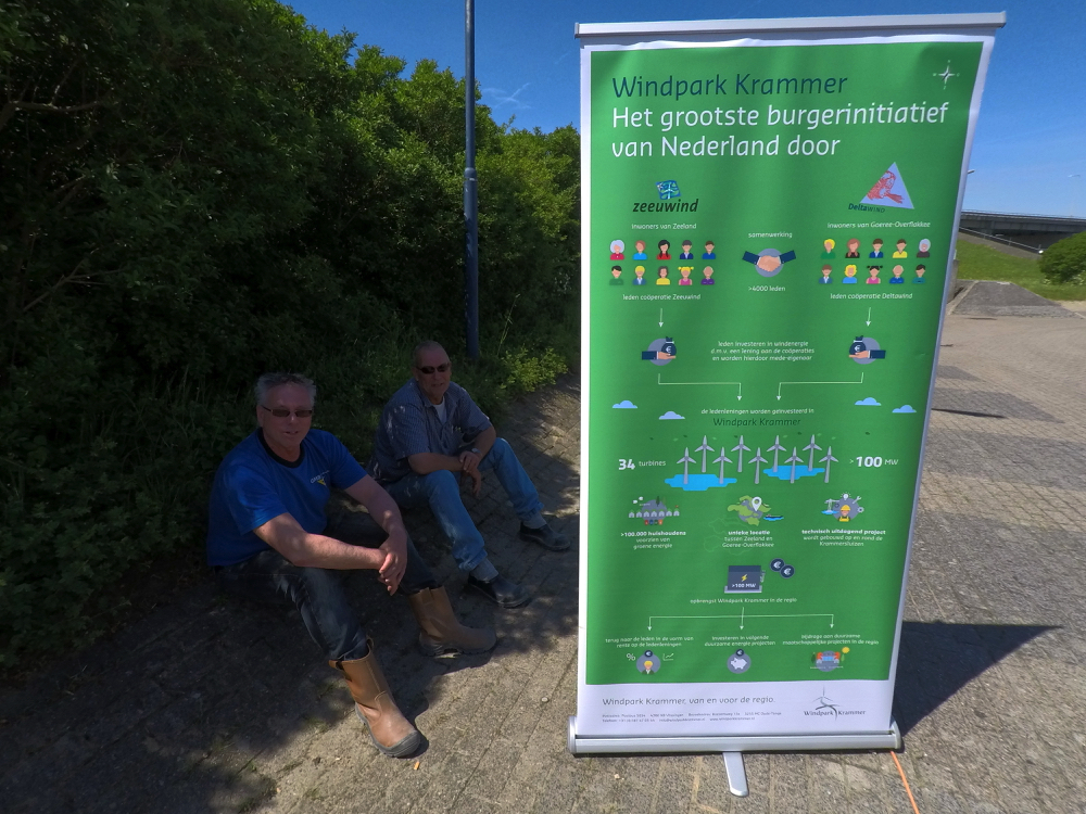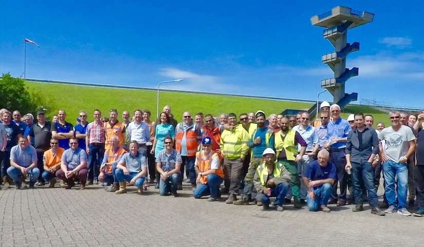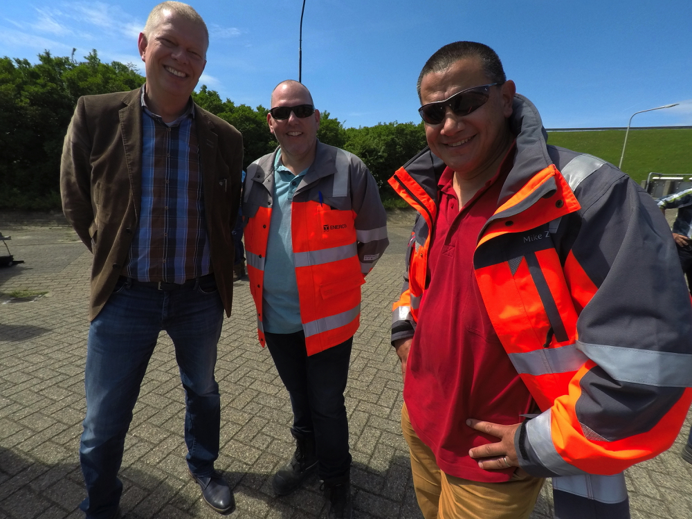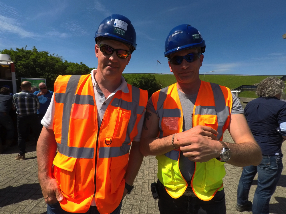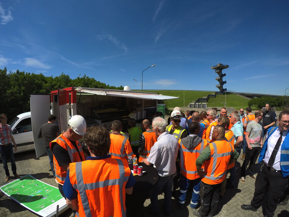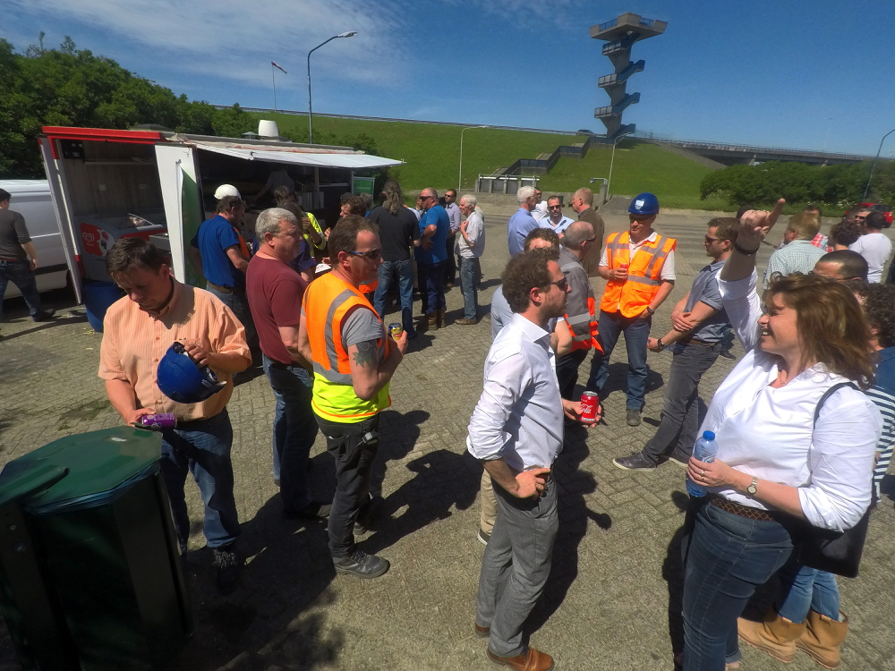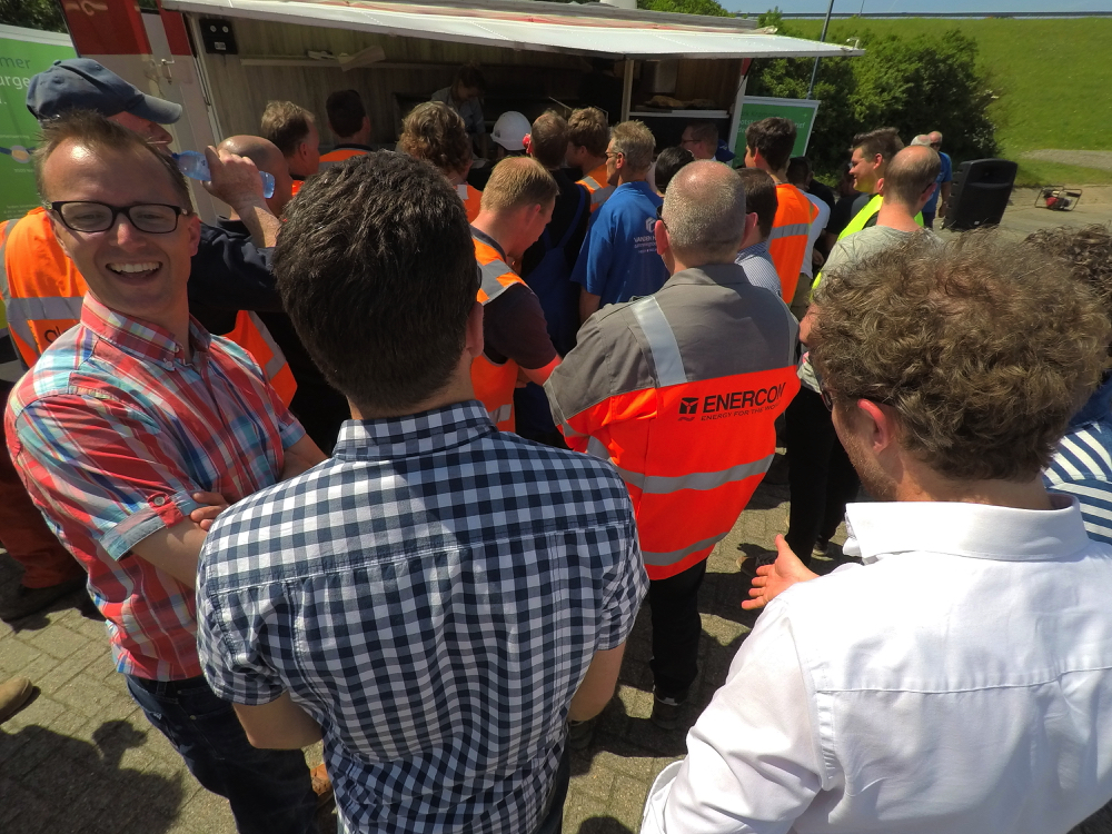 Terwijl frietbakker Donny van Dijk iedereen van de nodige snacks voorzag, complimenteerde directeur Ton Vrijdag namens Windpark Krammer de bouwers met hun veilig en kwalitatieve werk. Op naar de komende twee jaar!