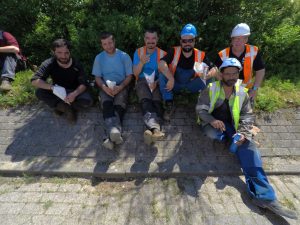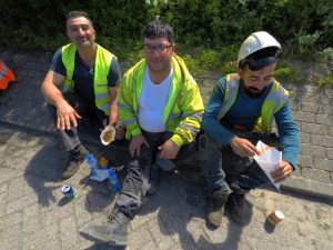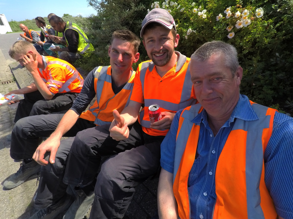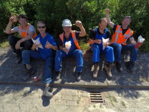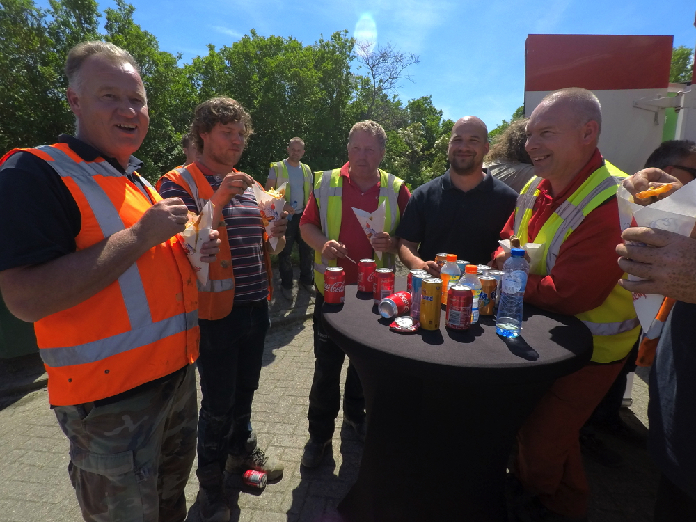 Begin mei is een mooie mijlpaal in de bouw bereikt: de bekisting van de eerste fundatie is verwijderd. Een mooi moment om de bouwers van Windpark krammer in het zonnetje te zetten. Letterlijk in het zonnetje, want op 17 mei kwamen alle bouwers samen om samen in de zon een frietje te eten.Â